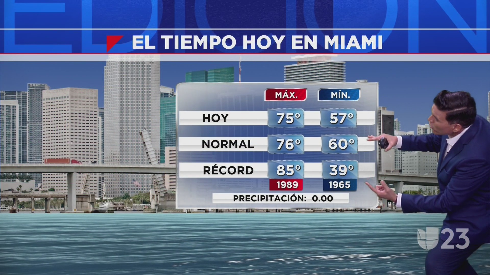 En miami en el transcurso de la jornada cielos poco nubosos con mucho calor y temperaturas altas de hasta 32ºc. Entrevista exclusiva con donald trump. Clima, temperatura y pronóstico diario para la ciudad de miami. Vientos flojos del sureste con velocidades de hasta 14 km/h. Pronóstico del tiempo en miami, fl para hoy y esta noche, condiciones meteorológicas y radar doppler de the weather channel y weather.com.